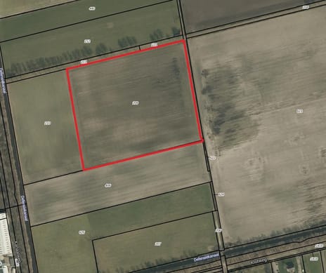 Een kaart zonder maten die de ligging van de percelen aangeeft. Bevat grenzen en perceelnummers.