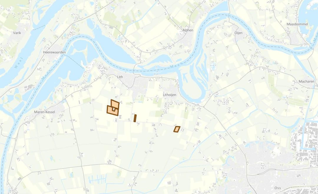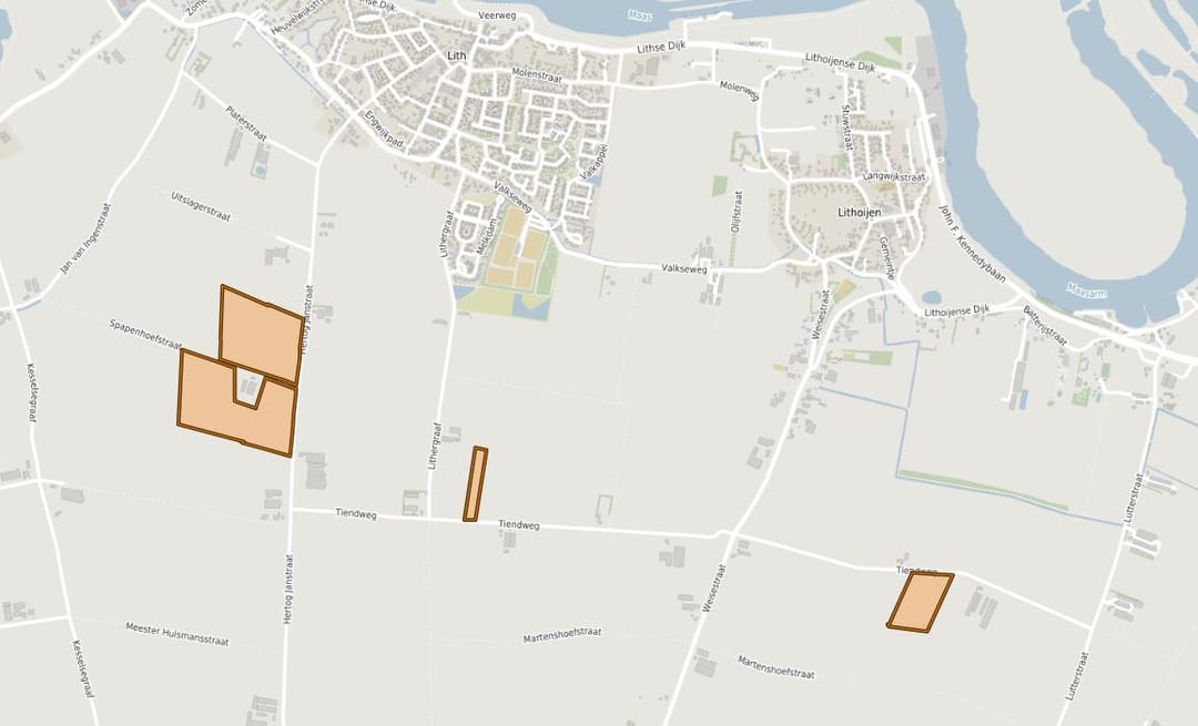 In het buitengebied van Lith/Lithoijen bieden wij u vier percelen cultuurgrond per inschrijving aan. Het betreffen twee percelen gelegen aan de Spapenhoefstraat en twee percelen aan de Tiendweg met een totale oppervlakte van 24,41.80 ha.