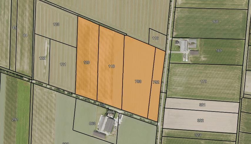 De percelen cultuurgrond zijn te koop per inschrijving.