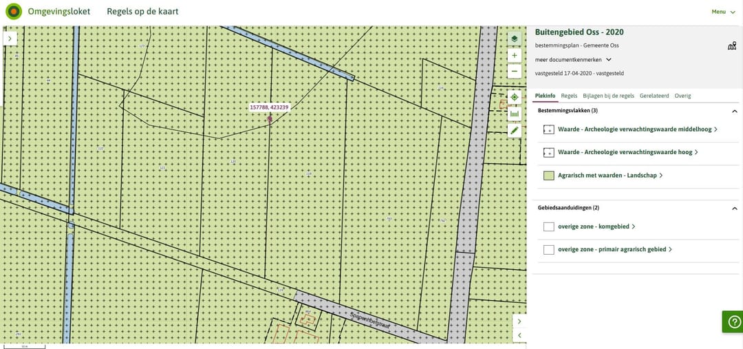 Het perceel "Koop II" is gelegen in het bestemmingsplan "Buitengebied Oss - 2020" en is vastgesteld door de Raad van de gemeente Oss op 17 april 2020