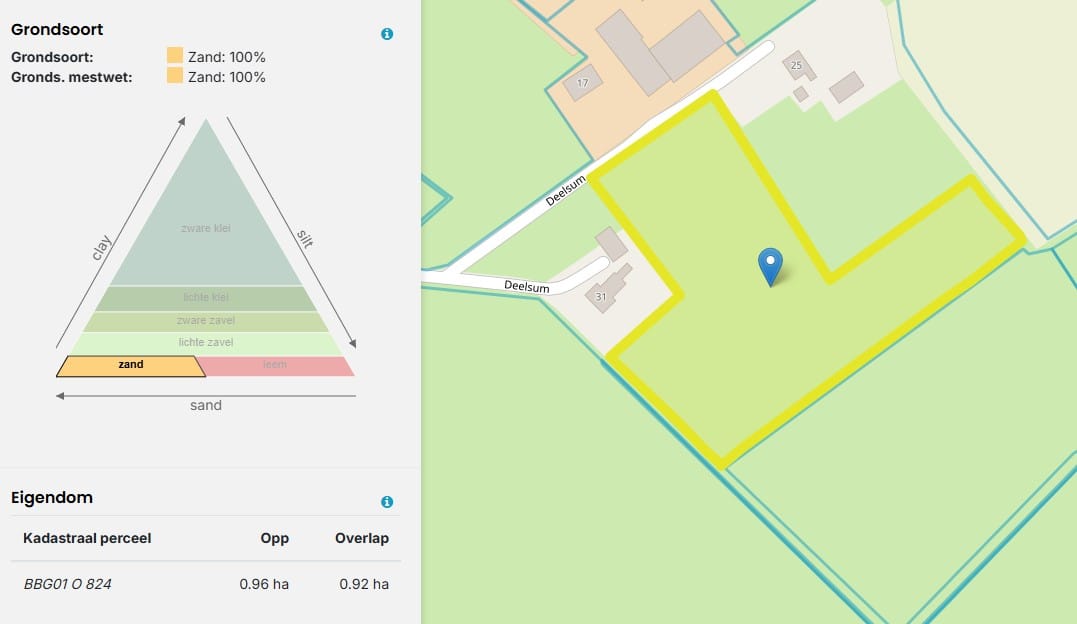 De cultuurgrond is de afgelopen jaren in gebruik geweest als grasland. De bodemsoort staat bekend als Veldpodzolgronden; leemarm en zwak lemig fijn zand (Hn21). De ontsluiting van het perceel is goed geregeld via de openbare weg.