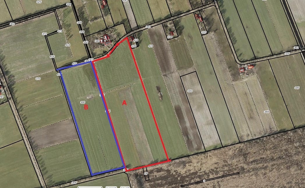 Optie 1. Perceel; het geheel beide percelen landbouwgrond met letteraanduiding A en B, met een oppervlakte van ca. 16.10.90 hectare.