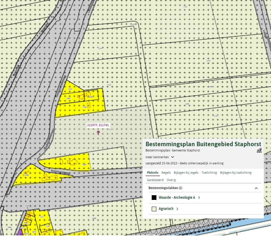 Bestemmingsplan: Enkelbestemming Agrarisch, dubbelbestemming Waarde – Archeologie 6;