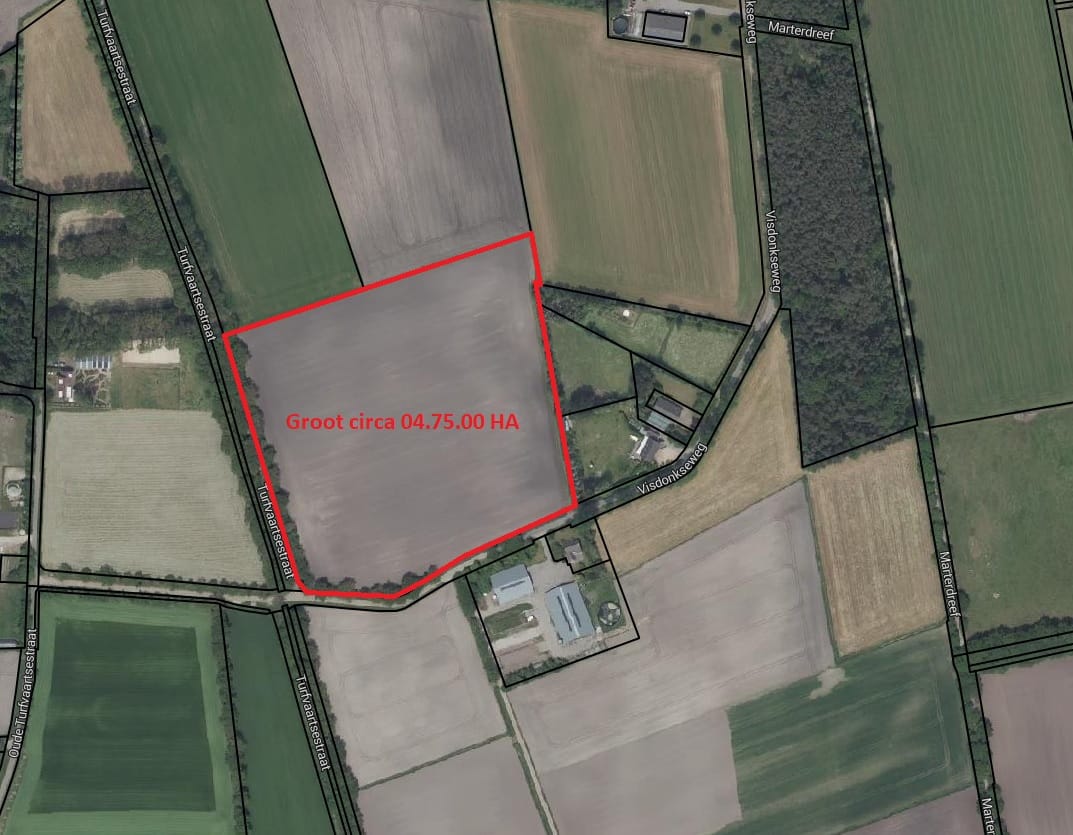 Aan de Visdonkseweg (hoek Turfvaartsestraat) te Roosendaal gelegen een perceel zandgrond met een totale oppervlakte van circa 4,75 HA. Dit perceel is gelegen aan een openbare verharde weg nabij de bebouwde kom van Roosendaal en mede hierdoor is de bereikbaarheid goed te noemen.