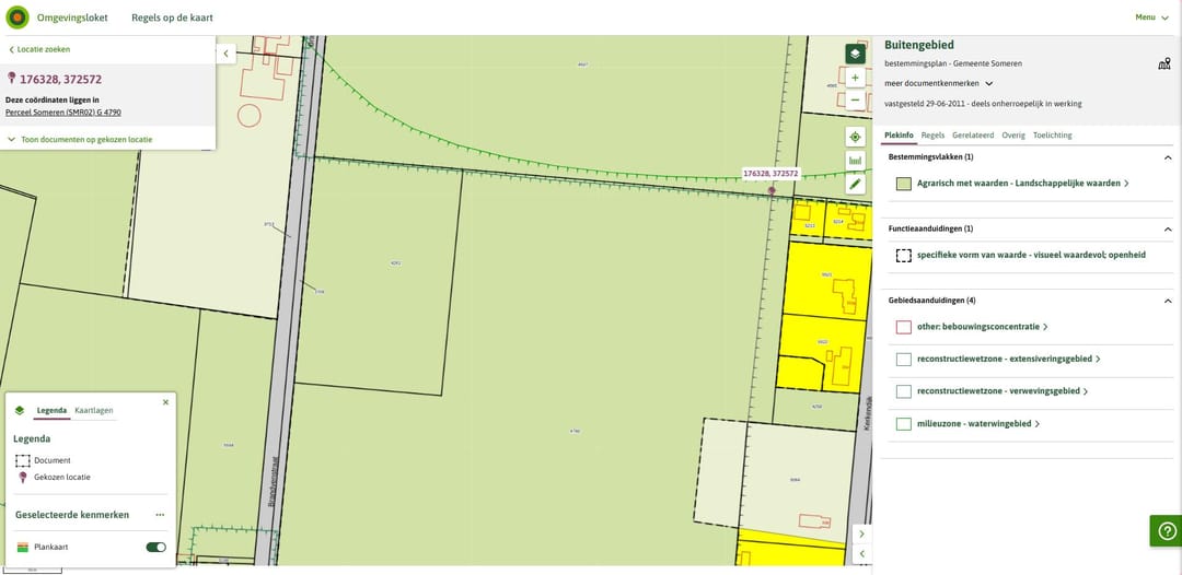 De cultuurgrond is gelegen in het bestemmingsplan "Buitengebied" en is vastgesteld door de Raad van de gemeente Someren op 29 juni 2011 / Identificatie: NL.IMRO.0847.BP02011002-VS02