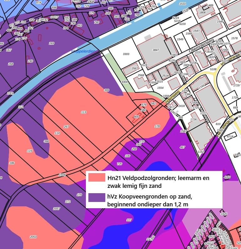 Bodem: Veldpodzolgronden en koopveengronden;