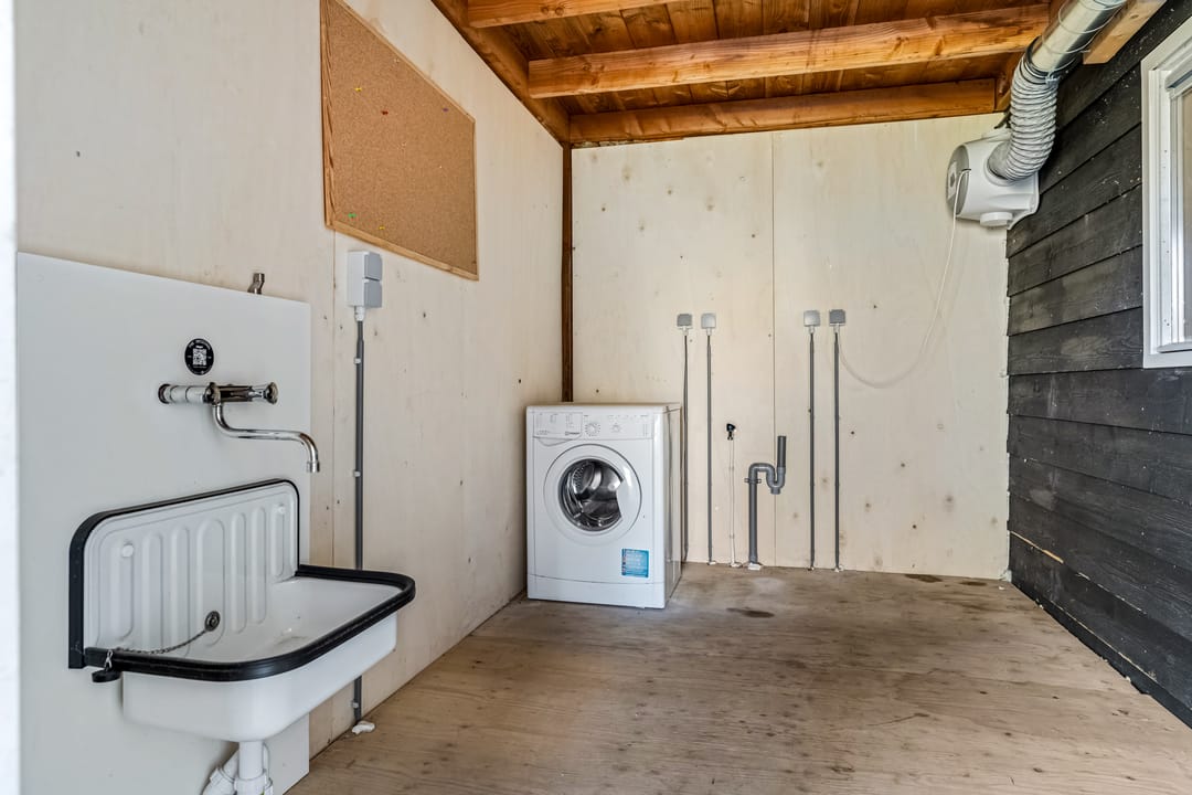 Er staat een klein gebouw van ruim 60 m2 waar elektra-, water- en gasaansluiting aanwezig is, alsmede riolering.