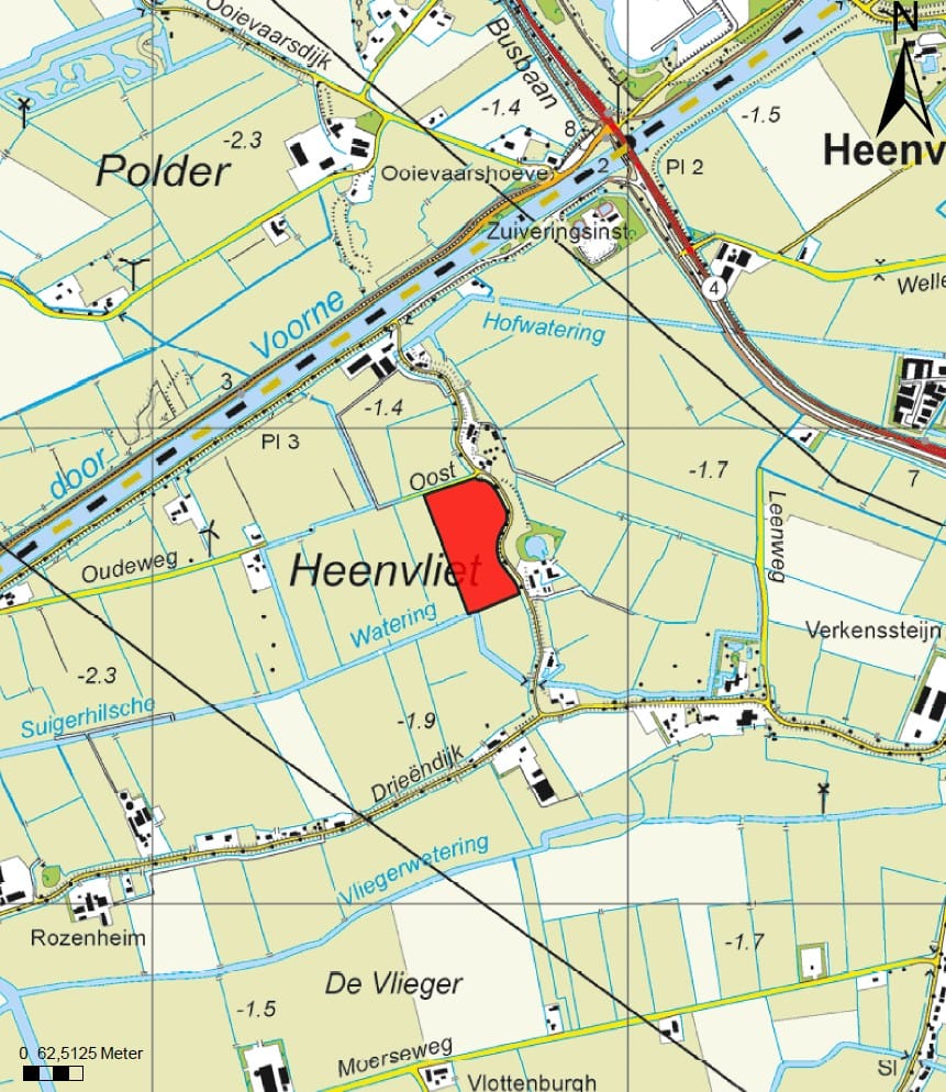 Het perceel is gelegen te Voorne-Putten, in het buitengebied van Heenvliet, namelijk in de Polder Heenvliet. De Polder Heenvliet bestaat uit wisselende grondsoorten. Het aangeboden perceel betreft voornamelijk kleigrond, staat bekend als vruchtbare grond en heeft een goede waterhuishouding. Het te koop aangeboden perceel is uitermate geschikt voor gebruik als grasland. Het perceel is geheel omringd door sloten en via een dam ontsloten langs de noordzijde richting de Konijnendijk.