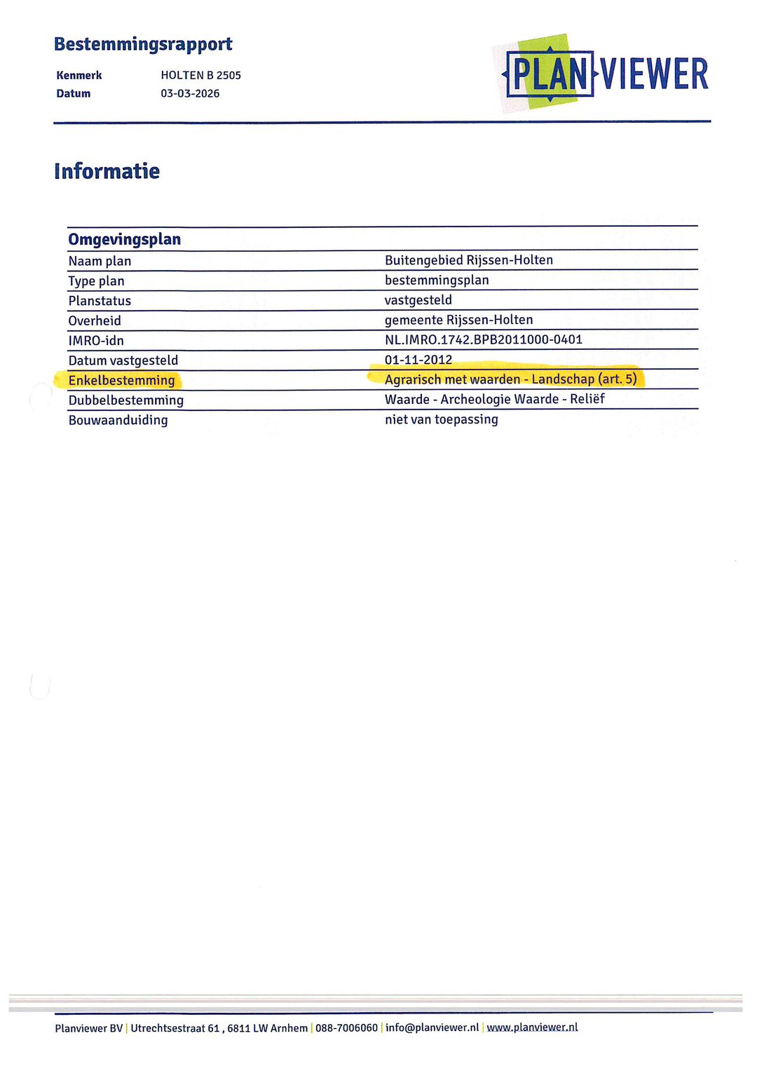 BESTEMMING: “AGRARISCH MET WAARDEN – LANDSCHAP”.