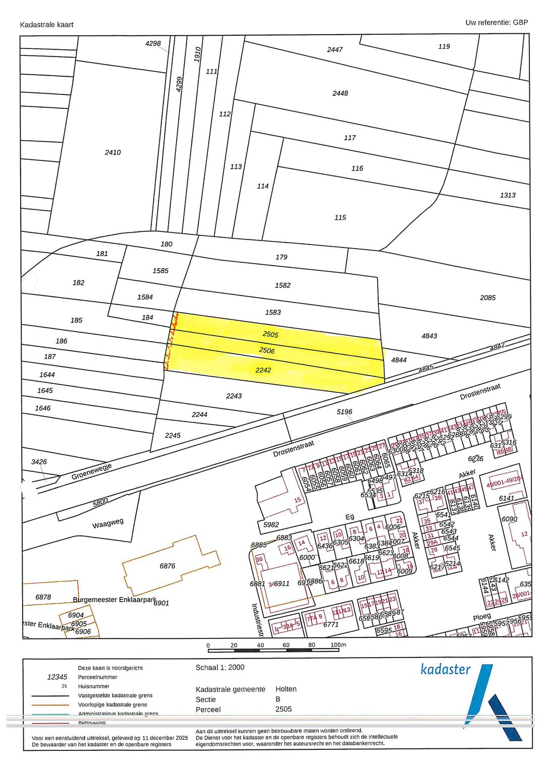 De kadastrale percelen Holten, B 2505, 2506 en 2242 worden ontsloten middels een zandweg welke voor de helft deel uit maakt van deze percelen (rood gearceerd op de kadastrale kaart).