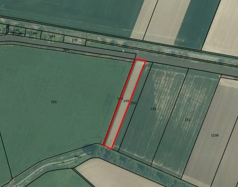 Een kaart zonder maten die de ligging van de percelen aangeeft. Bevat grenzen en perceelnummers.