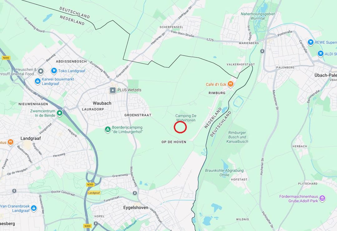 Het perceel is gelegen nabij de watertoren van Rimburg. In de omgeving van het perceel liggen voornamelijk landbouwgronden, natuurgronden en een camping.