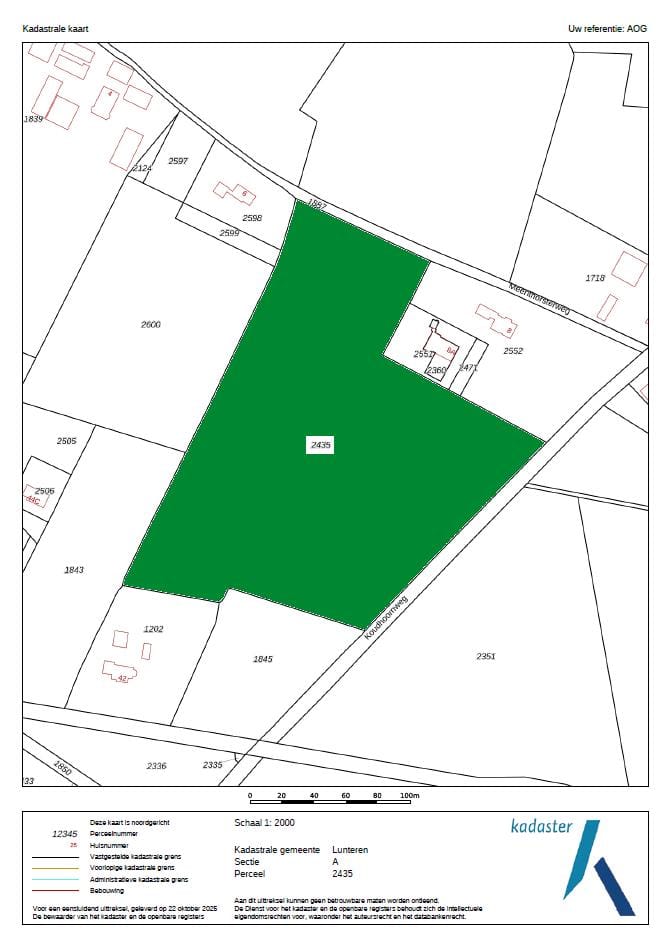 Kadastrale informatie: kadastraal bekend bij de gemeente Lunteren, sectie A, nummer 2435, groot ca. 36.858 m².