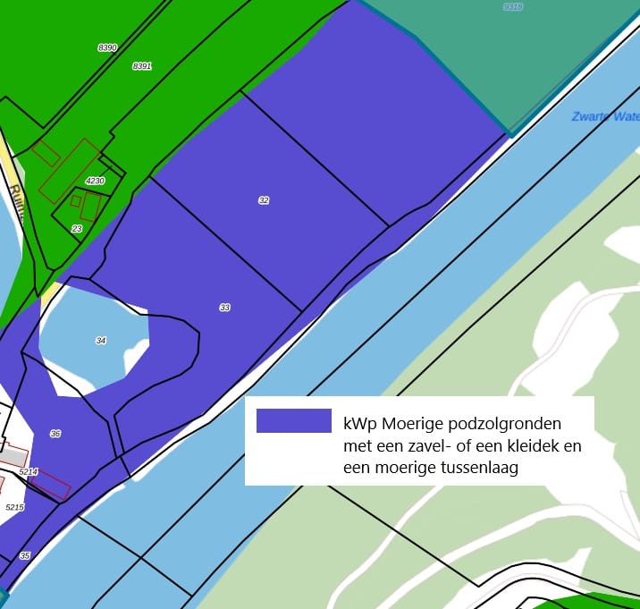 Bodem: Moerige podzolgronden met een zavel- of een kleidek en een moerige tussenlaag;