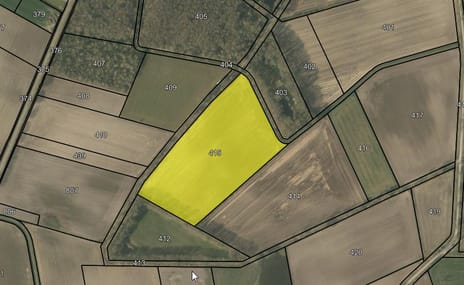Een kaart zonder maten die de ligging van de percelen aangeeft. Bevat grenzen en perceelnummers.