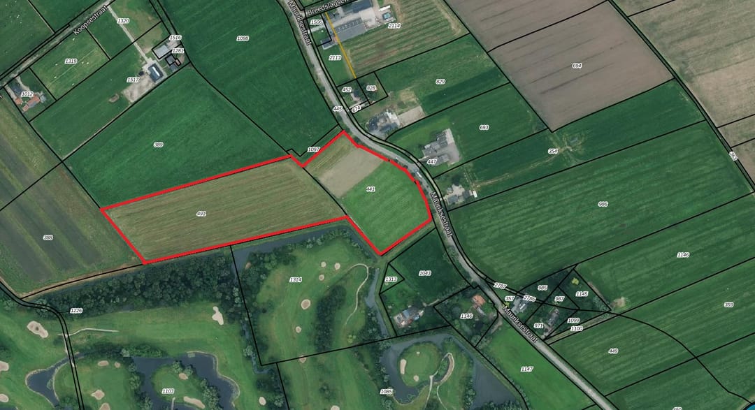 Betreft een aaneengesloten kavel grond met een oppervlakte van 39.210 m2 (3.92.10 ha.), gelegen aan de Mauriksestraat te Zoelen, kadastraal bekend als Zoelen sectie F nummer 441 en 491. De kavel beschikt over een directe ontsluiting op de Mauriksestraat en strekt zich vanaf de Mauriksestraat in westelijke richting uit over een gemiddelde diepte van circa 320 meter tot aan de aldaar gelegen B-watergang. De kavel wordt aan de straatzijde begrensd door een A-watergang, terwijl de overige zijden worden omringd door een B-watergang.