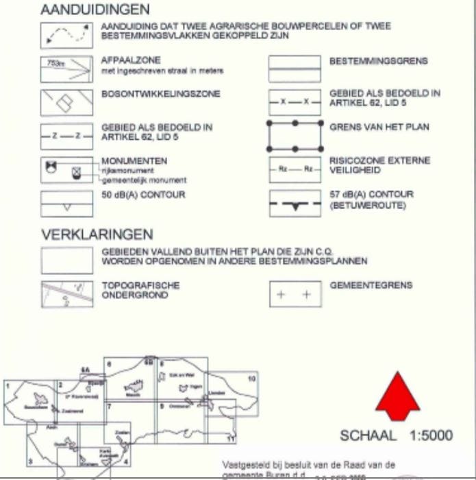 De kavel is gelegen in het buitengebied van Zoelen, gemeente Buren. Krachtens het vigerende bestemmingsplan "Bestemmingsplan Buitengebied Buren", vastgesteld door de gemeenteraad op 29 september 2009, heeft de kavel de navolgende bestemming: