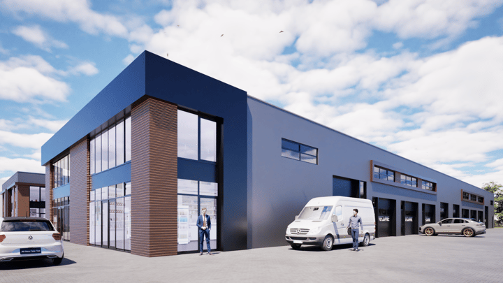 Het project is ontworpen met oog voor duurzaamheid, gebruiksgemak en uitstraling, en biedt ondernemers een toekomstbestendige bedrijfsruimte op een professioneel ingericht terrein met voldoende parkeergelegenheid en manoeuvreerruimte.