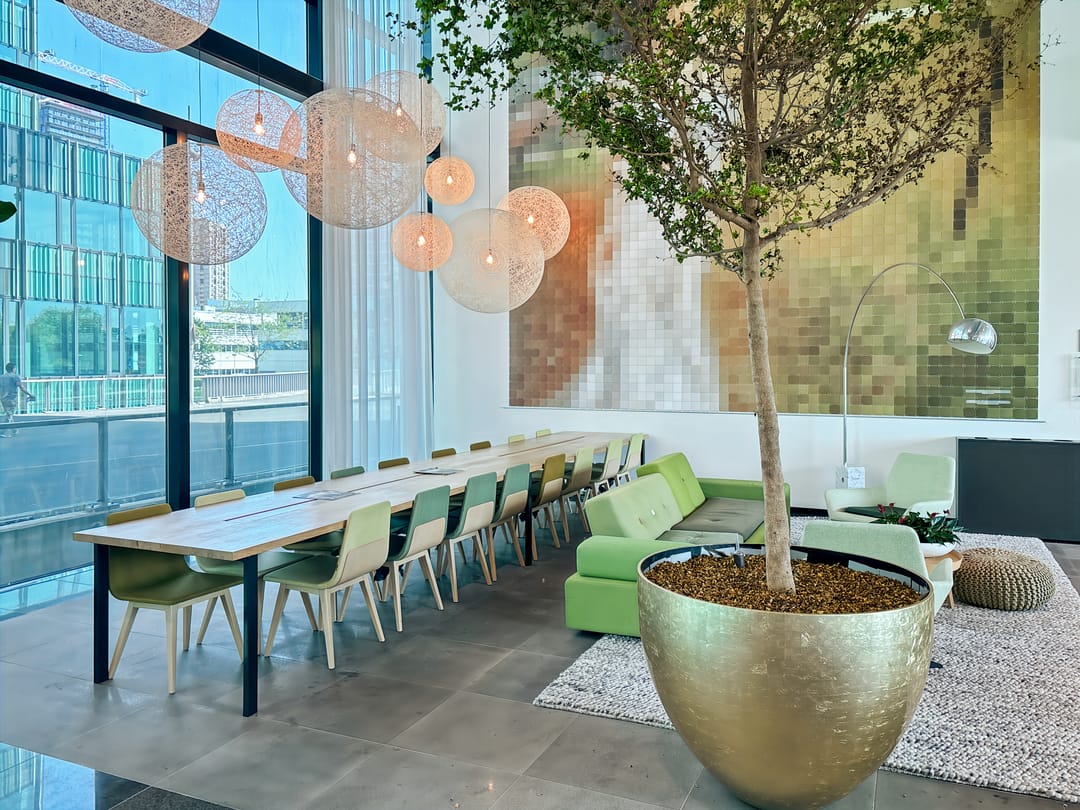 De volledig glazen gevel van het gebouw zorgt voor eindeloos veel daglicht en u hebt een prachtig uitzicht op het landschap. Wanneer de avond valt, kunt u uw spullen inpakken en ontspannen in de bar en het restaurant op locatie. U kunt ook gebruikmaken van de grootste concentratie van uitgaansgelegenheden om de hoek in de stad.