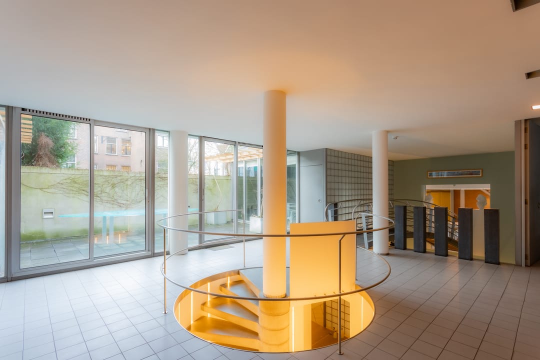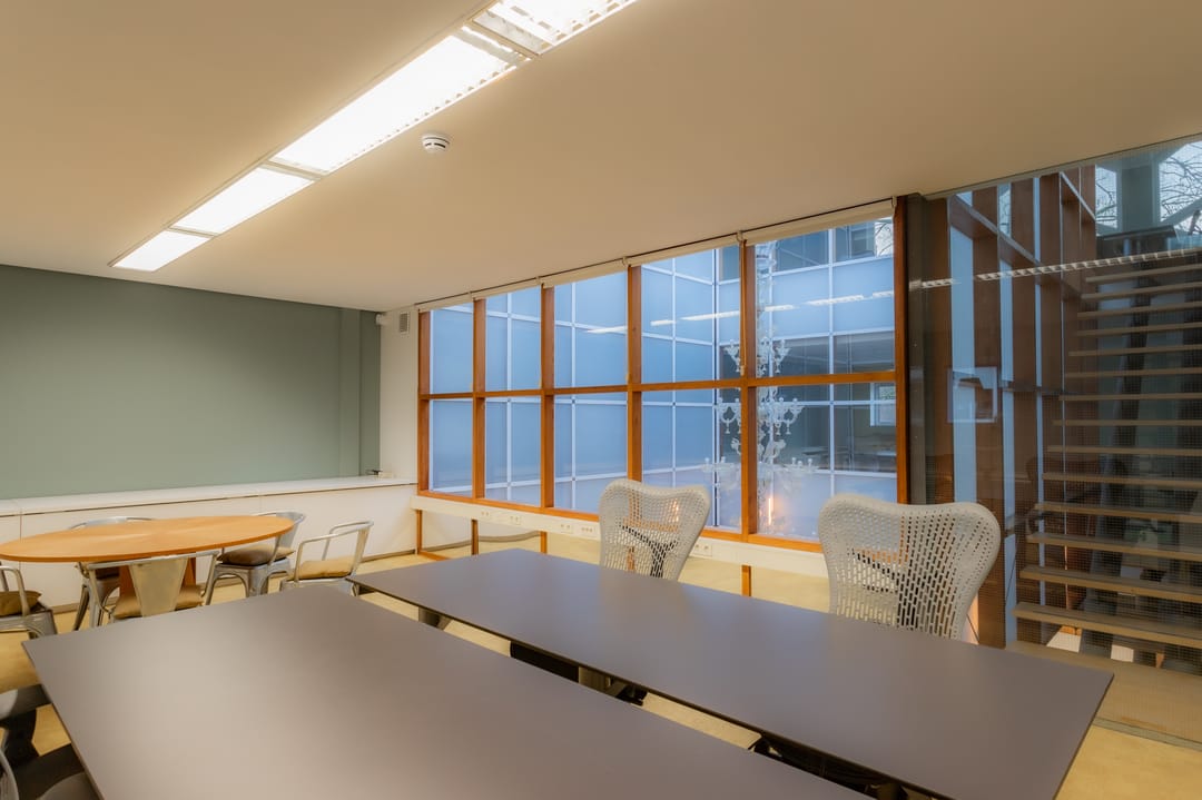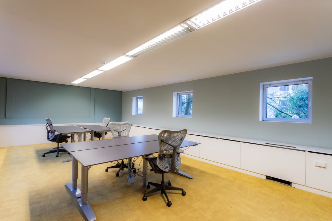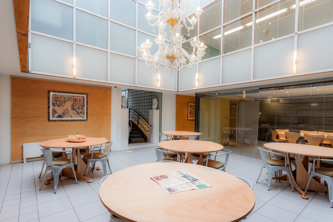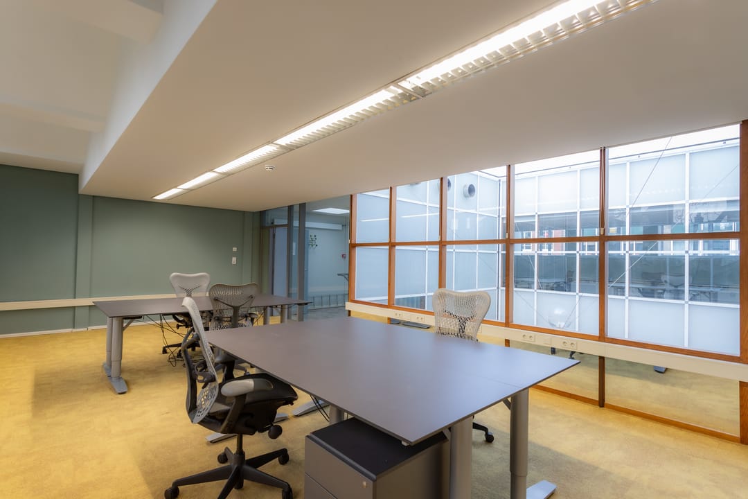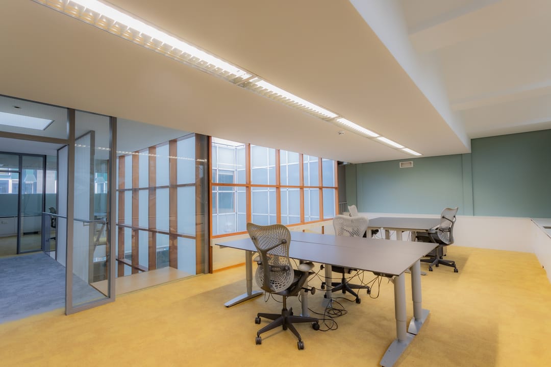 Deze werkplek combineert de charme van historische architectuur met moderne designprincipes. Grote ramen zorgen voor een overvloed aan natuurlijk licht, terwijl strak vormgegeven interieurs en zorgvuldig samengestelde werkplekken creativiteit en productiviteit stimuleren.