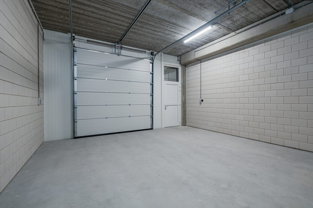 - Automatisch bedienbare overheaddeur (3,0m breed x 3,2m hoog) met afstandbediening.