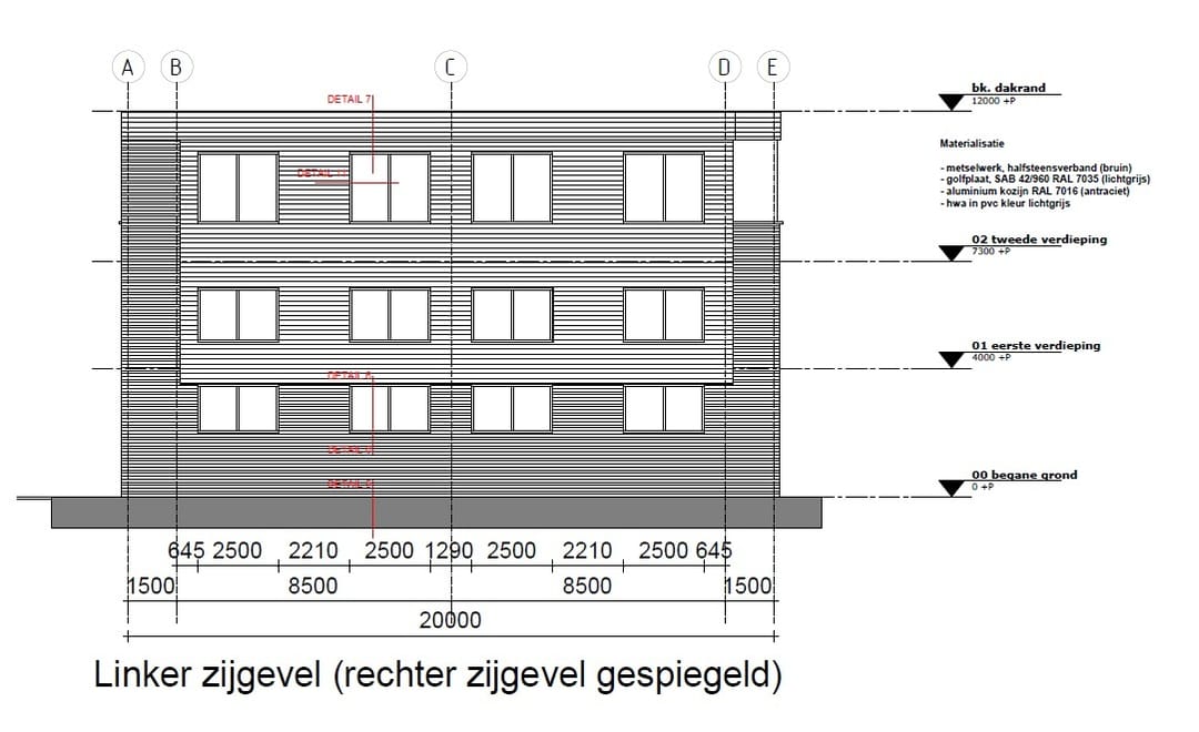 • Gevelkozijnen aluminium RAL 7016 (antraciet) voorzien van HR++ beglazing