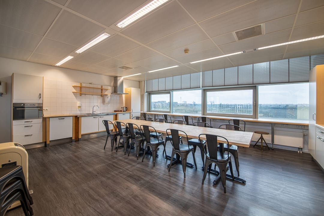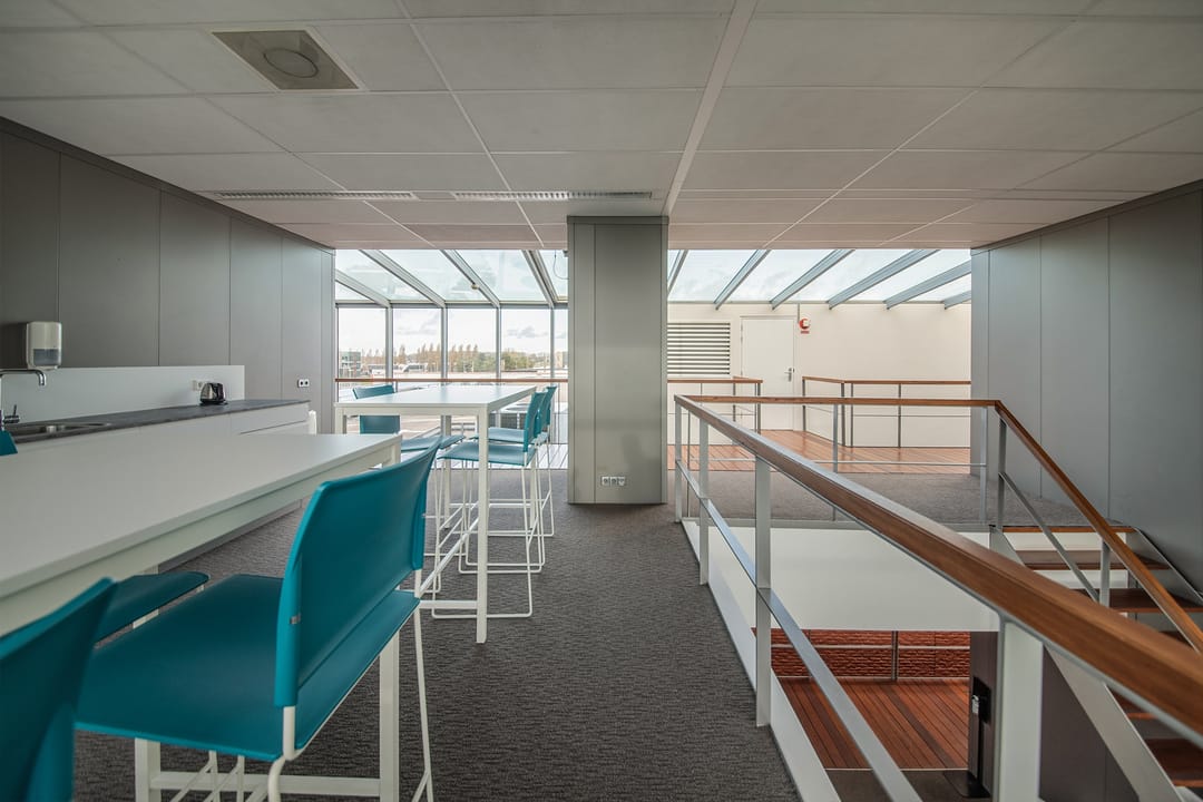Er zijn gezamenlijke zitjes en pantry’s waar huurders kunnen samenkomen om een kop koffie te drinken of de lunch te gebruiken.
