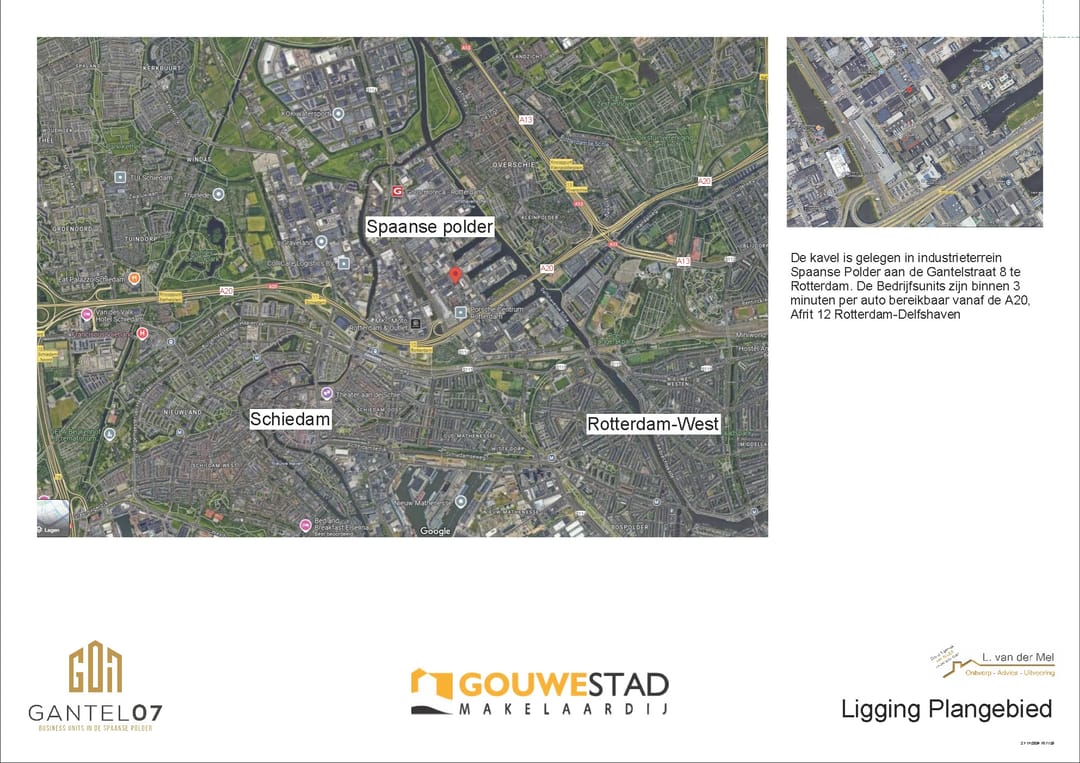 Aan de Gantelstraat 8 in Rotterdam wordt momenteel gebouwd aan Gantel07, een exclusief project van zeven hoogwaardige bedrijfsunits. Voor ondernemers die willen professionaliseren of beleggers die zoeken naar waardevast vastgoed, biedt dit project een uitgelezen kans. De strategische locatie op de Spaanse Polder, pal naast de A13, A20 en Rotterdam The Hague Airport, garandeert een optimale bereikbaarheid. Een uniek pluspunt in dit gebied is dat de units worden gerealiseerd op eigen grond; u investeert dus in puur vastgoed zonder onzekere erfpachtconstructies.