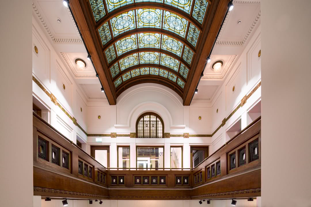 Bij binnenkomst in de ontvangsthal, toont het gebouw zich direct als indrukwekkend monument. Op de begane grond en op de eerste verdieping, beiden direct ontsloten door deze hal, bevinden zich historische kantoor- en vergadervertrekken, sommige zelfs met origineel interieur. De tweede en derde verdieping hebben een flexibele indeling van verschillende kantoorunits, kleine vergaderruimtes en belunits met een meer eigentijds karakter en sfeer. De monumentale Commissarissenkamer is op aanvraag beschikbaar voor vergaderingen. Via het souterrain is de ruime binnentuin bereikbaar.