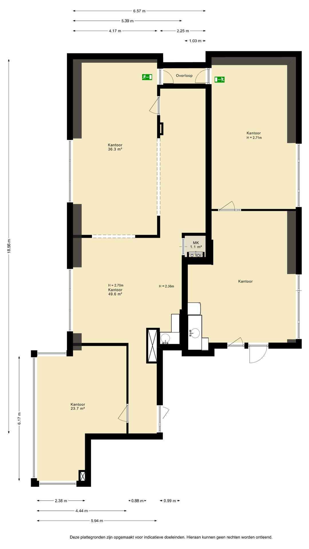 De beschikbare kantoorunits zijn praktisch ingedeeld en beschikken over een prettige lichtinval, waardoor een comfortabele en productieve werkomgeving ontstaat. Afhankelijk van de unit zijn er zowel open werkruimtes als separate kantoorvertrekken aanwezig.