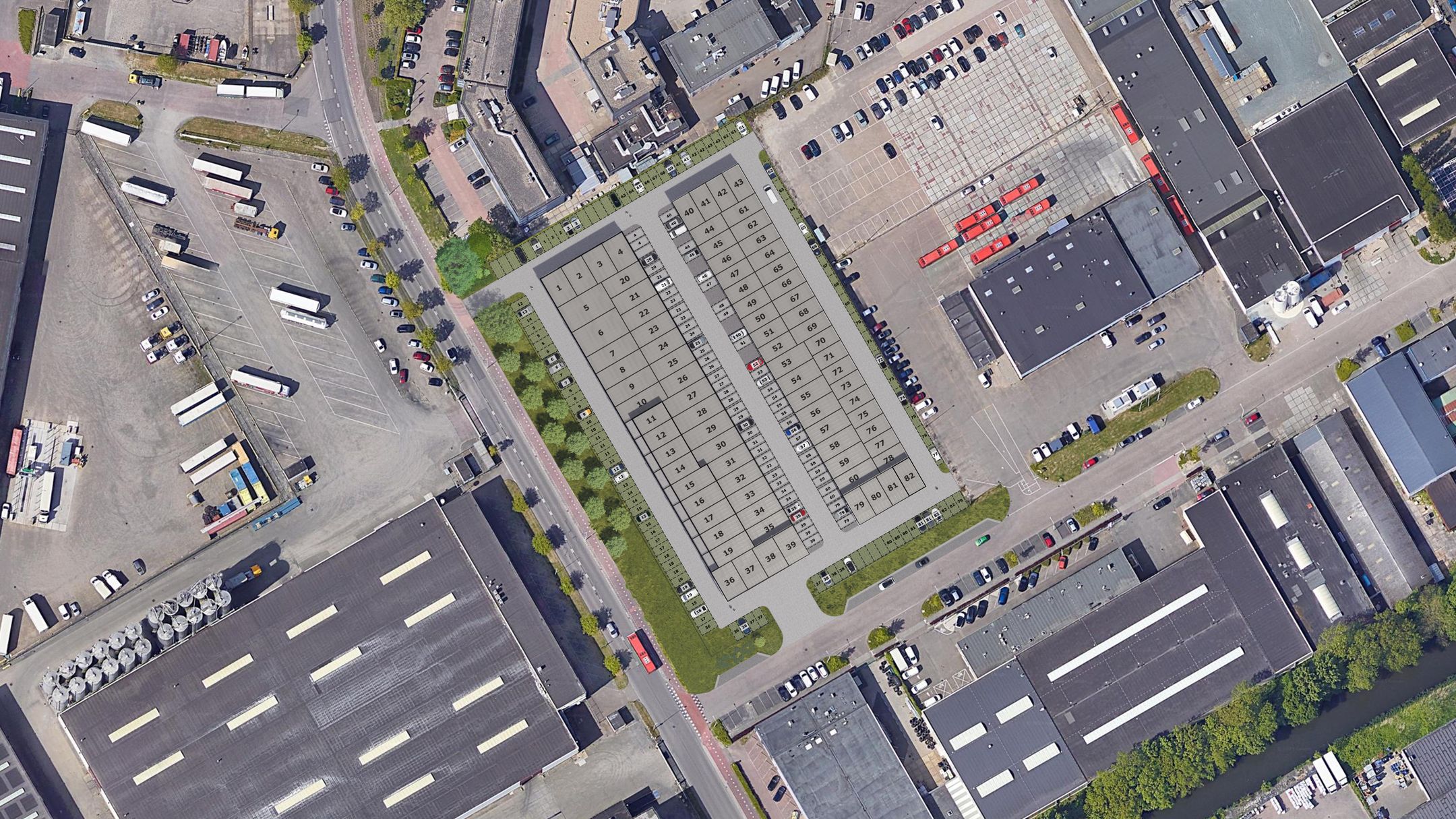 - Totaal 82 bedrijfsunits verdeeld over twee gebouwen
