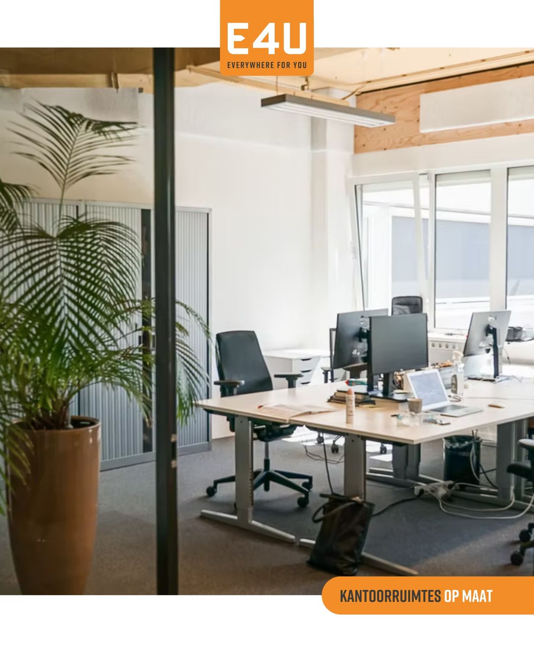 Everywhere for You is een kantoorconcept dat ondernemers ondersteund in de bedrijfsvoering. Dit doen wij door jou inspirerende werkruimten te bieden waar je geen omkijken meer naar hebt. Zo kijken we samen naar de meest optimale inrichting van je bedrijfshuisvesting, zodat je een ruimte gebruikt die je precies past en met je mee kan groeien. Maak daarbij bijvoorbeeld gebruik van de apart afsluitbare opslagruimte voor webshops, beschikbare vergaderzalen of vul het benodigde aantal werkplekken (tijdelijk) aan met flexwerkplekken binnen het gebouw.