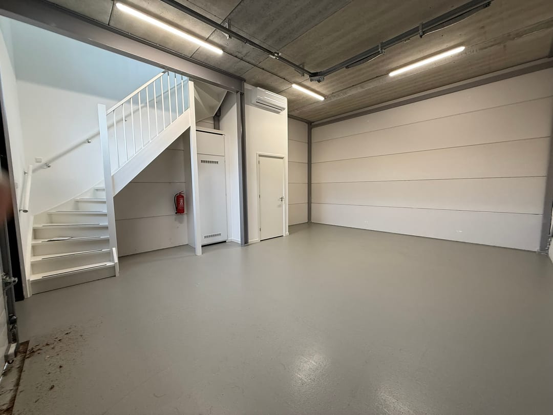 - Airconditioning, overheaddeuren, betonvloer, toilet, pantry, inbouwarmaturen en te openen ramen