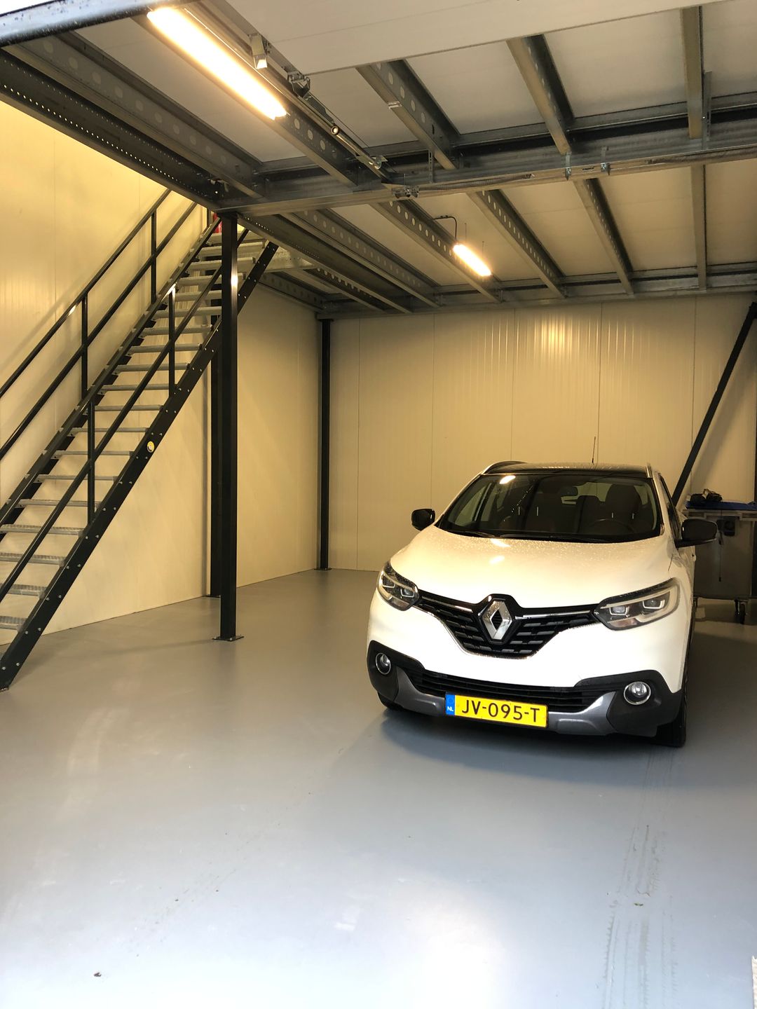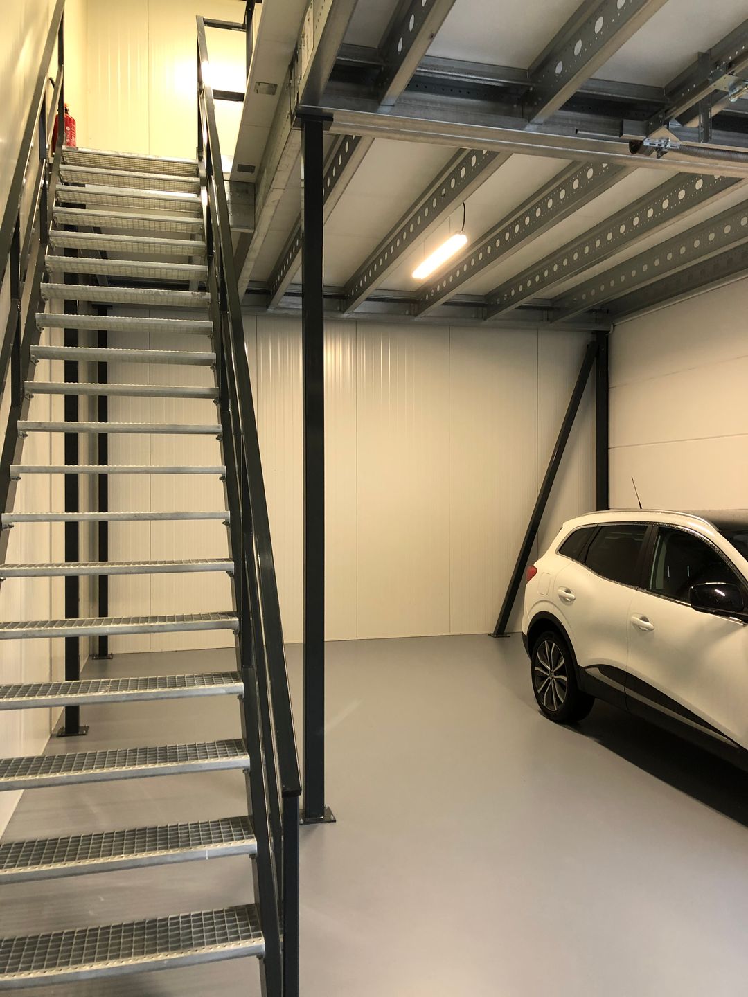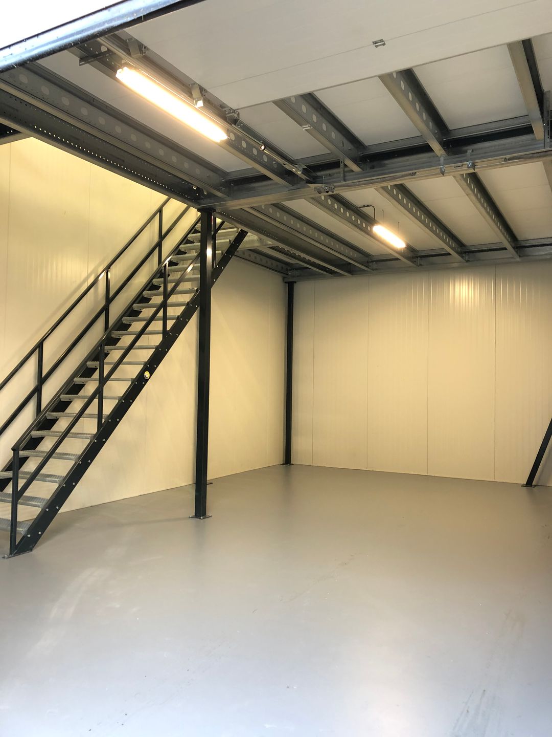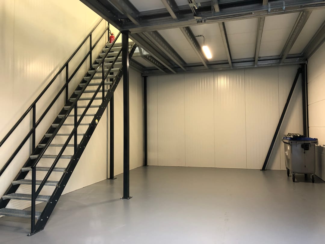 De begane grond is uitgevoerd in gewapend beton en heeft een draagvermogen van maar liefst 1.500 kg/m², ideaal voor zware opslag. De verdiepingsvloer heeft een draagvermogen van 500 kg/m². De unit is voorzien van een overheaddeur, separate loopdeur, elektra, verlichting en aansluitingen voor water en afvoer.