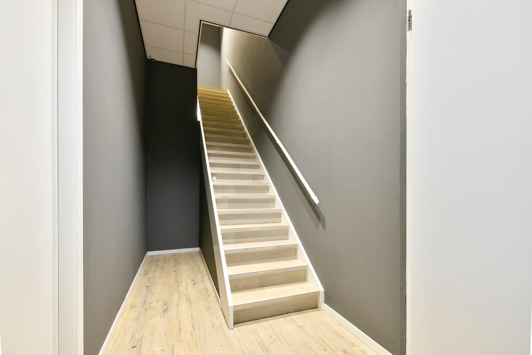 - Dubbele ingang, enerzijds met doorloop middels een vaste trap naar de verdieping en anderzijds met doorloop rechtstreeks in de bedrijfsruimte;
