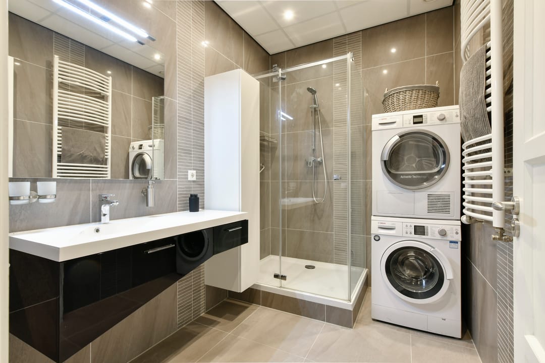 - Badkamer voorzien van douche, radiator en wasmachine-/droger aansluiting).