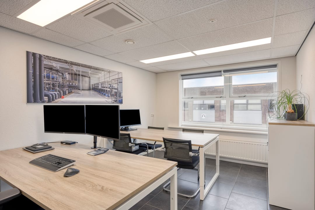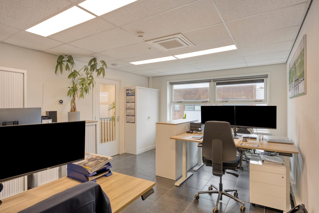 • Twee kantoren voorzien van tegelvloer, elektra, data, radiatoren, systeemplafond, ledverlichting en airco