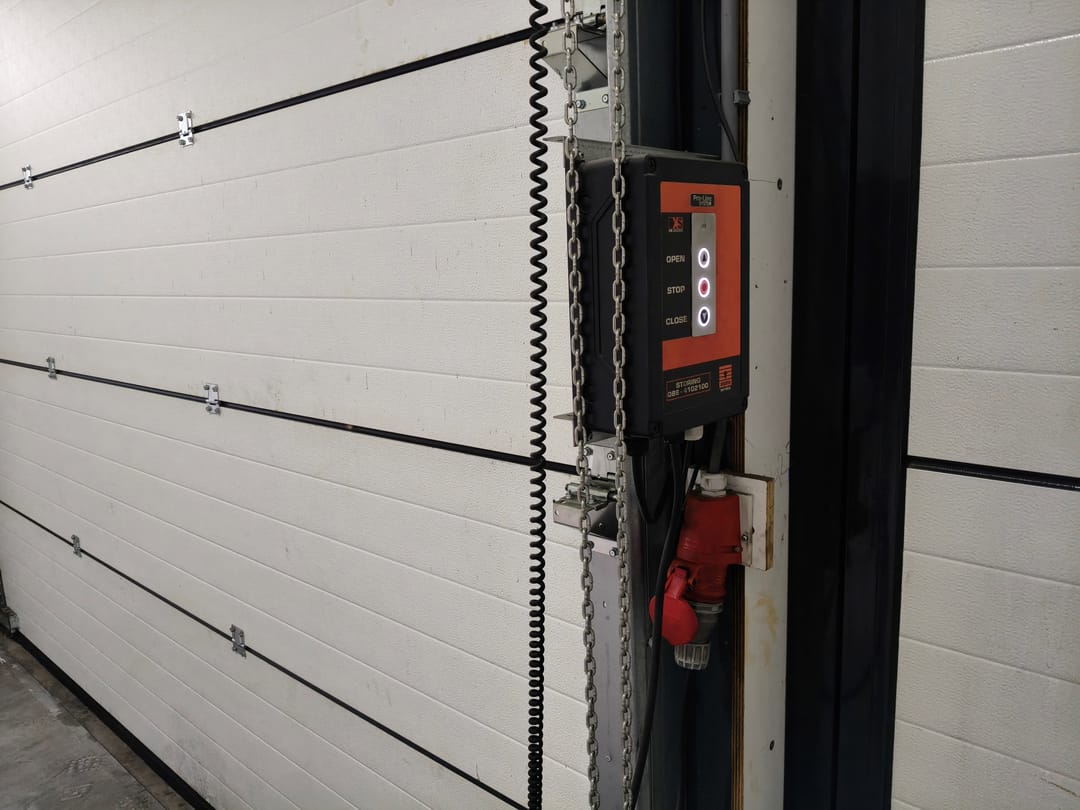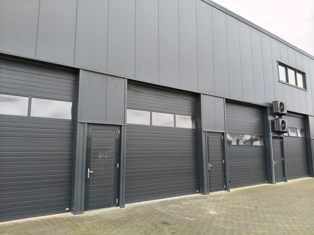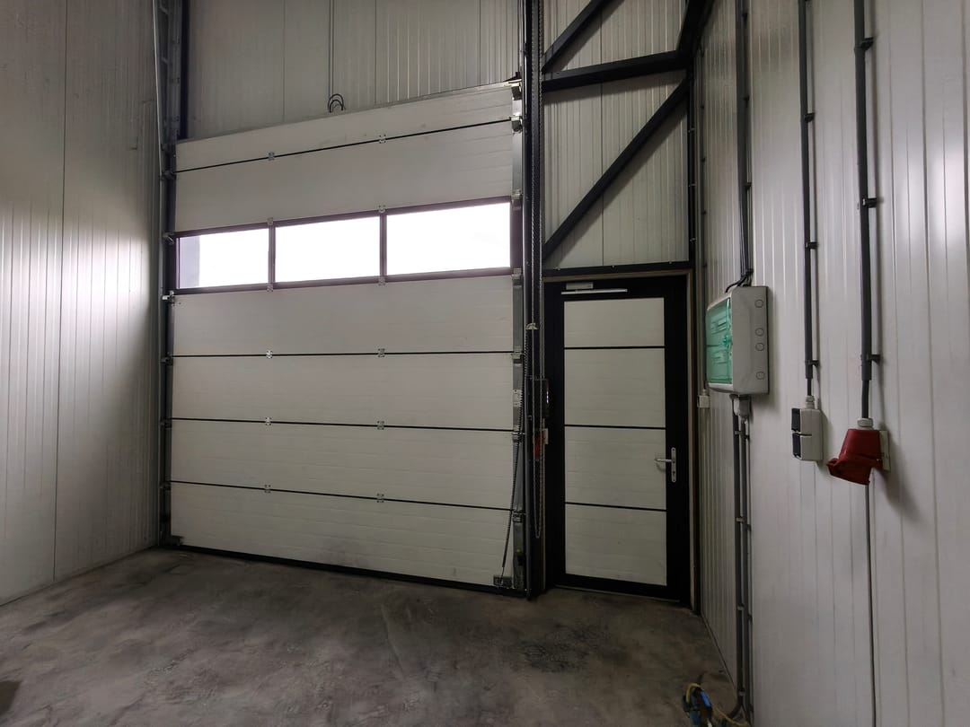 • Voorzien van een elektrische overheaddeur met afstandsbediening (3,5 m breed x 4 m hoog).