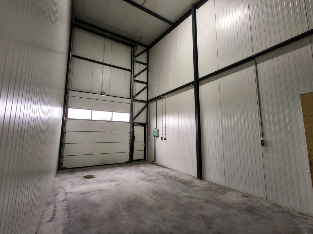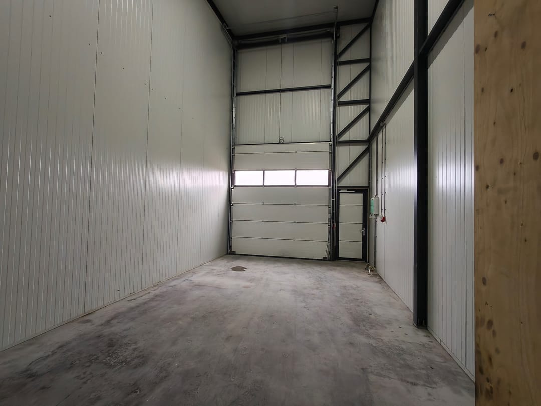 - Overheaddeuren, krachtstroom, betonvloer en toilet