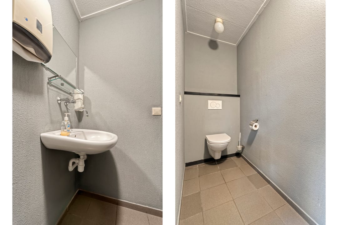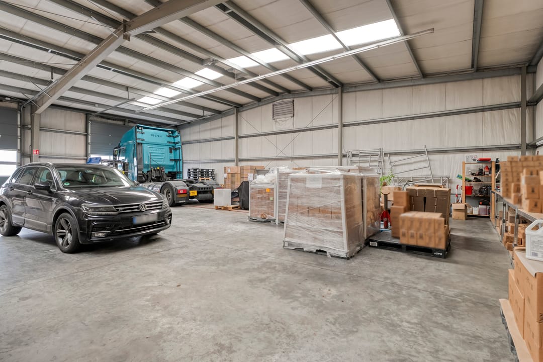 Ruime bedrijfsruimte met vloeistofdichte betonvloer, smeerkelder, twee overheaddeuren, tweemaal loopdeur, een stookruimte met opstelplaats voor de CV-installatie, toiletruimte met toilet en fontein en een kantoorruimte. Aan de achterzijde van het pand bevindt zich een ruime overkapping/luifel en garage met overheaddeur. De bedrijfsruimte is bereikbaar via het ruime buitenterrein of vanuit de tuin via een schuttingdeur.