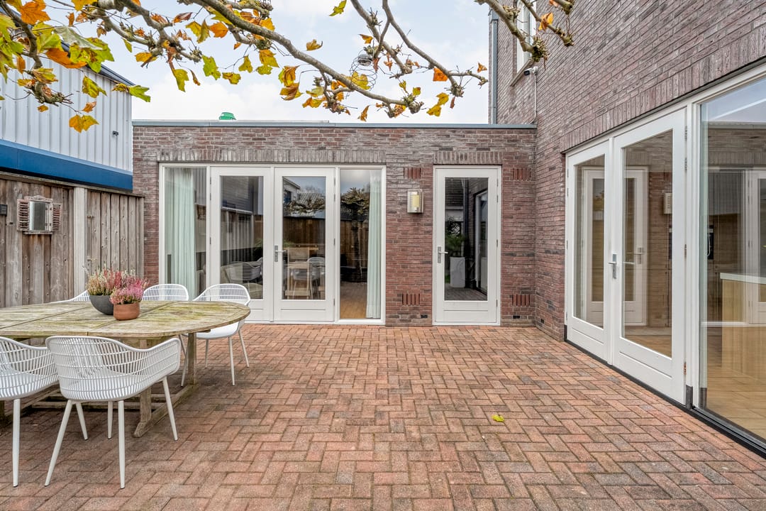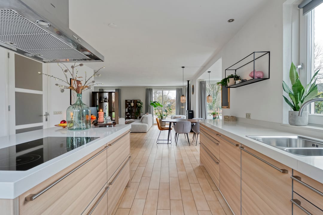 Op een royaal perceel van 1.438 m² staat deze ruime VRIJSTAANDE WONING, verdeeld over drie verdiepingen. De open woonkeuken is voorzien van keramisch parket met vloerverwarming, een modern kookeiland en een lichte erker. Aan de achterzijde van de woning tref je het huidige café aan met openslaande tuindeuren, deze ruimte is tevens geschikt als kantoorruimte, salon aan huis of slaapkamer. De eerste verdieping beschikt over drie slaapkamers, welke extra ruim aanvoelen door de hoge plafonds. Daarnaast is een aparte toiletruimte en badkamer welke van alle gemakken is voorzien. Ook aan bergruimte geen gebrek, op de royale tweede verdieping tref je nog twee slaapkamers aan en een overloop met keukenblok. Daarnaast biedt deze verdieping de mogelijkheid om een tweede badkamer te realiseren en heb je toegang tot een dakterras, waar je in alle rust kunt genieten van de buitenruimte en de zon.