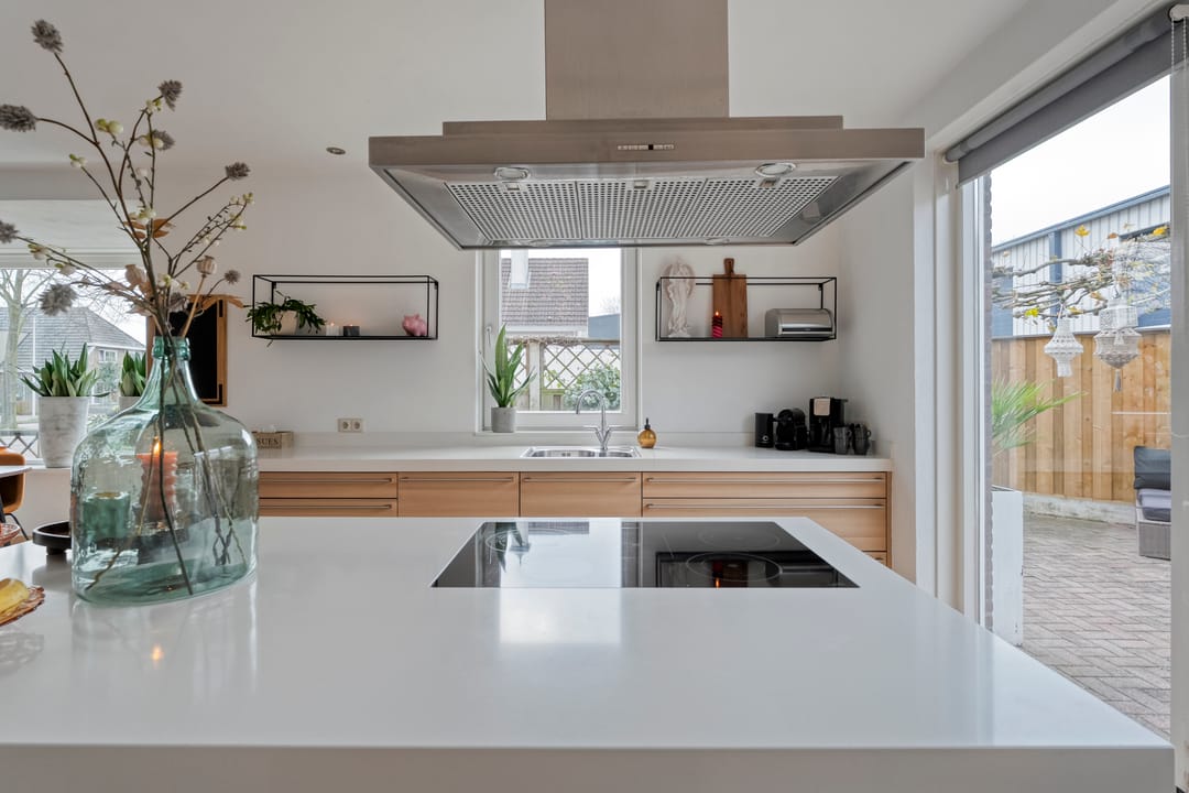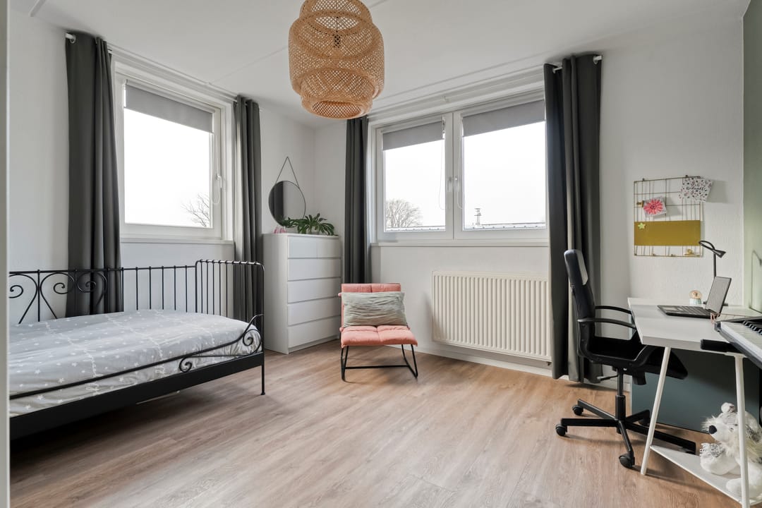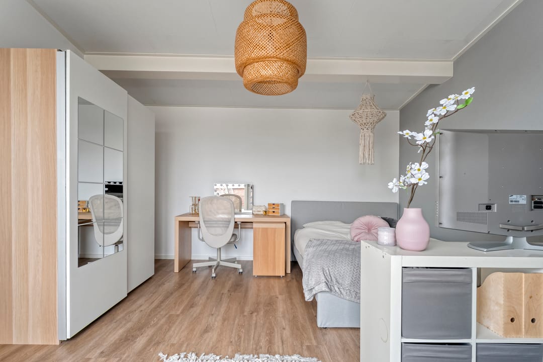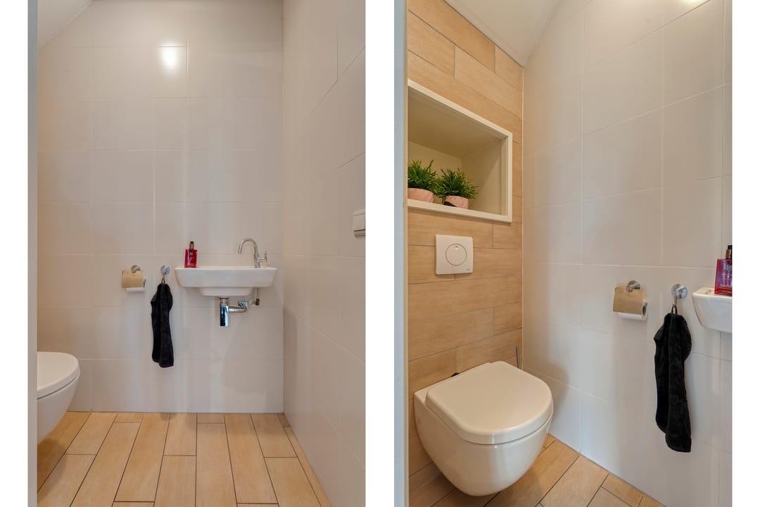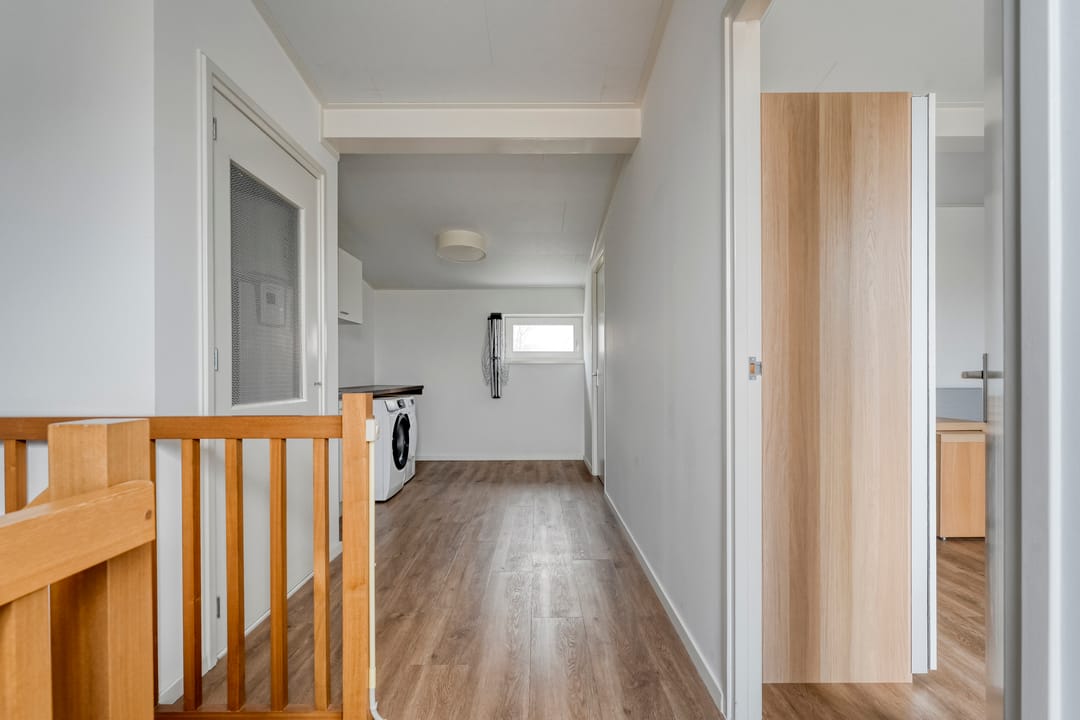 De tweede verdieping biedt nog eens 2 extra slaapkamers, waarvan 1 zeer ruim met toegang tot het dakterras. Op deze verdieping bevindt zich ook een stookruimte met opstelplaats voor de hybride CV-installatie en hier vind je een aanrechtblad met witgoedaansluiting.