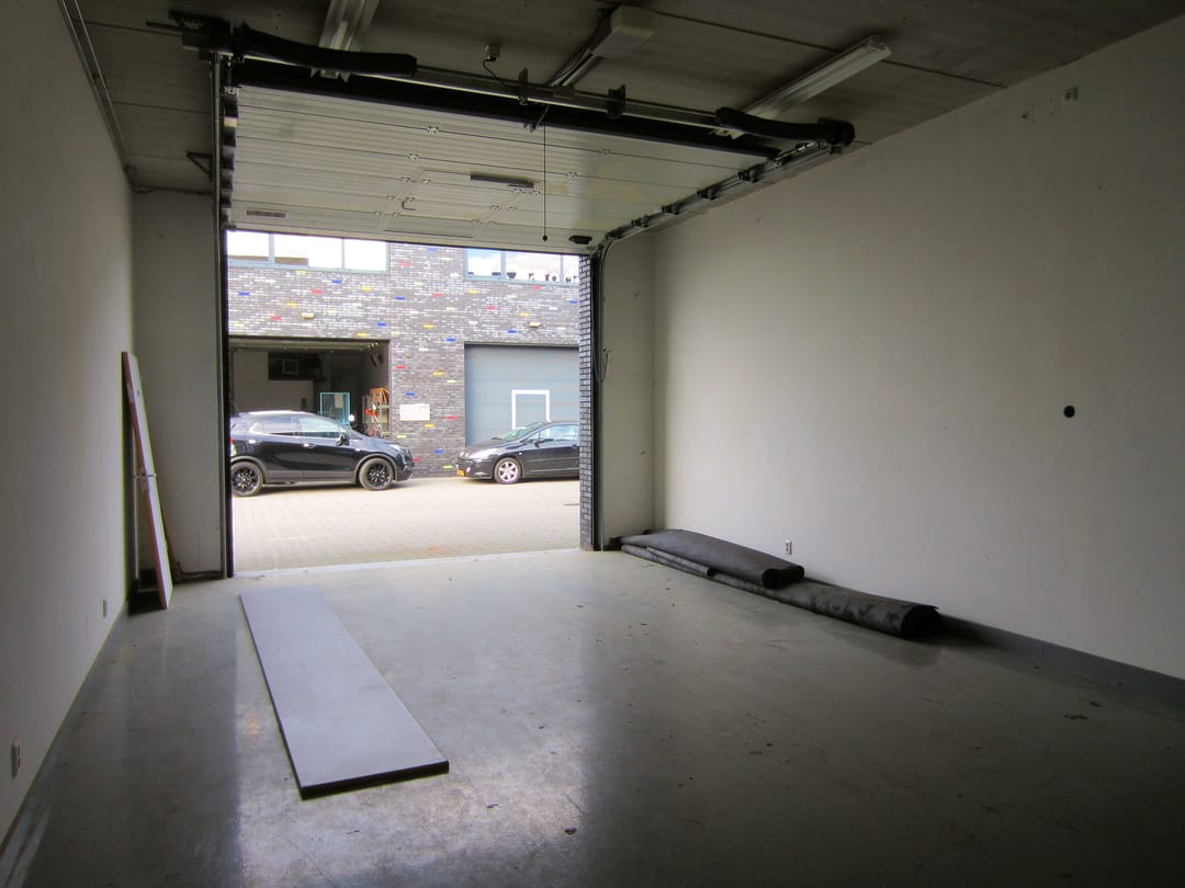 - Overheaddeuren, betonvloer, heater, toilet, pantry en inbouwarmaturen