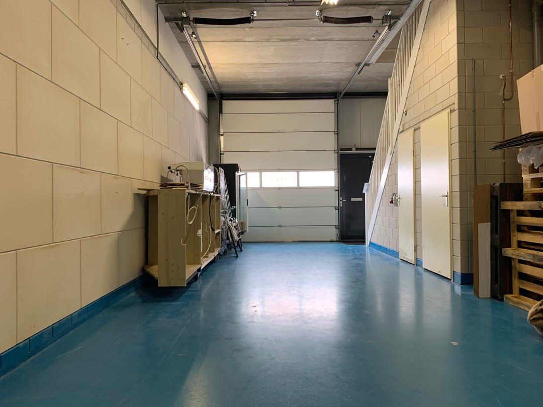 De bedrijfsruimte op de begane grond beschikt o.a. over een onderheide betonvloer voorzien van coating, een overheaddeur, verwarming, een toiletruimte en een vrije hoogte van ca. 3,98 meter.