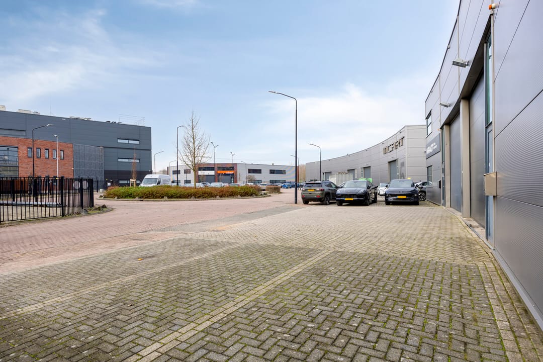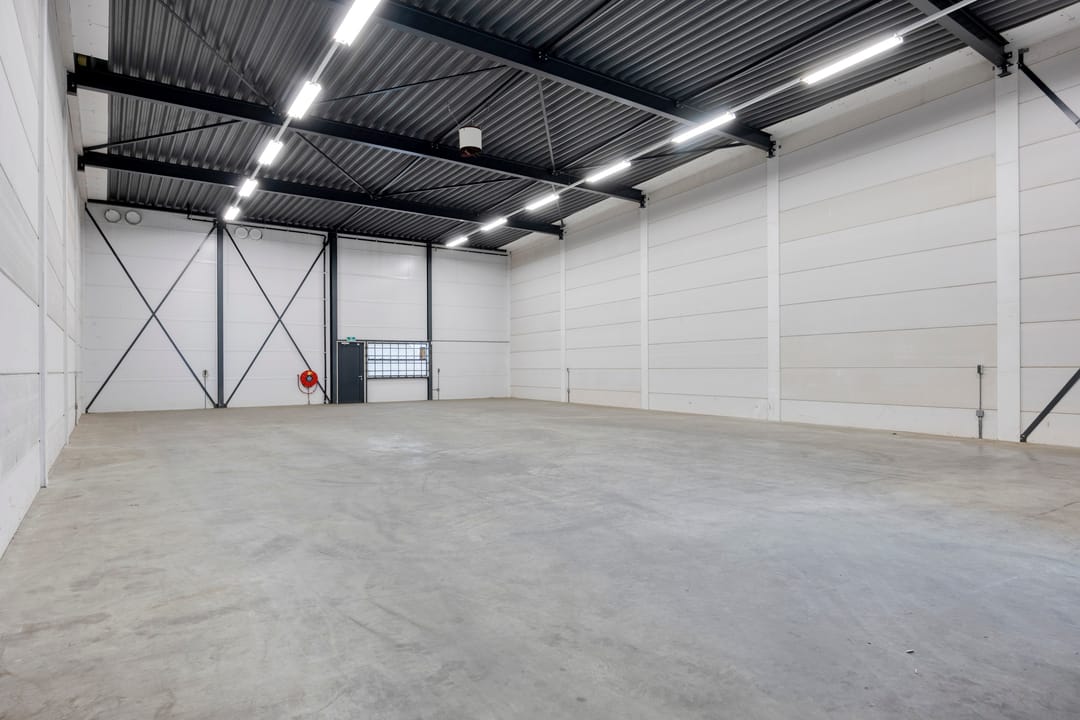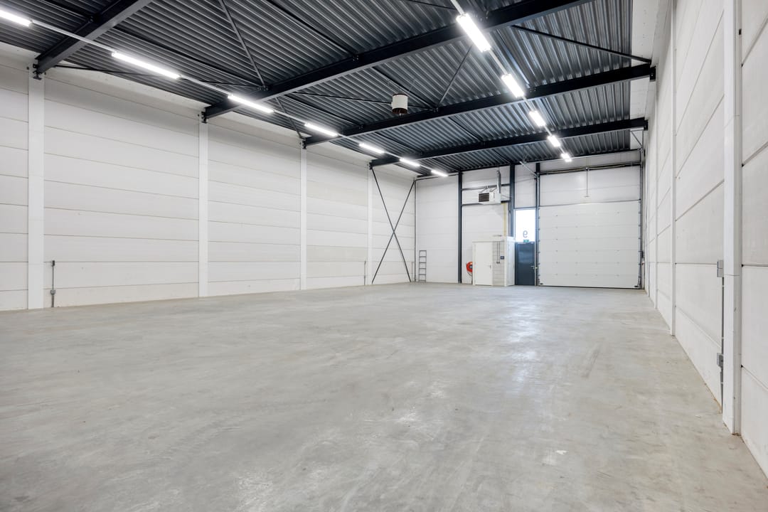 De bedrijfsruimte beschikt over een royale vrije hoogte, waardoor het eenvoudig is om stellingen te plaatsen en de ruimte optimaal te benutten voor opslag en logistieke doeleinden. De moderne uitstraling en praktische indeling zorgen voor een breed toepassingsgebied.