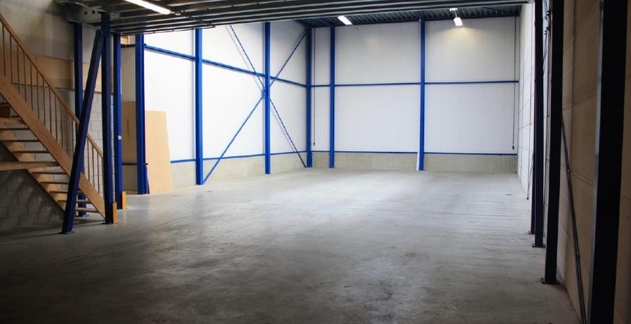 - Lichtstraten, overheaddeuren, betonvloer, toilet en pantry