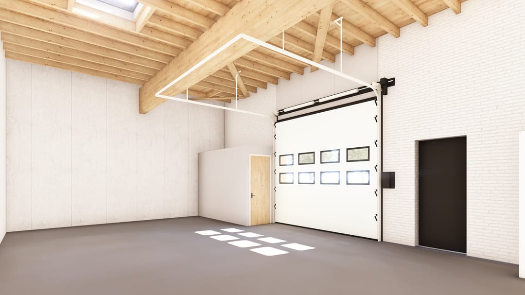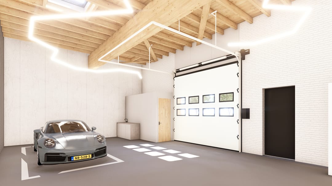 -Overheaddeur: sectionaaldeur 3,7 mtr (H) en 3,2 mtr (B), geïsoleerde elektrisch bedienbaar.