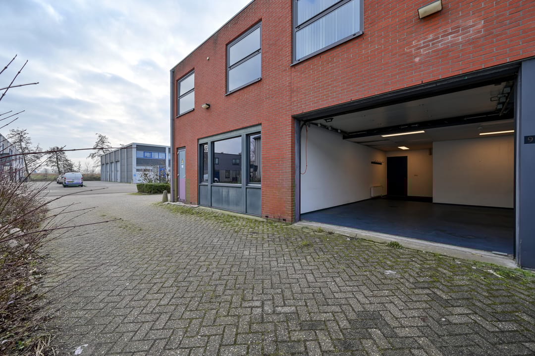 Aan de achterzijde is een weg voor de goede bereikbaarheid van deze bedrijfsruimte.