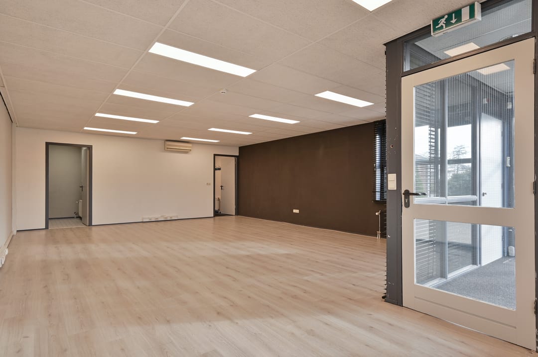 Hier is een grote kantoor-/werkruimte met een separate kantoorkamer aan de voorzijde.