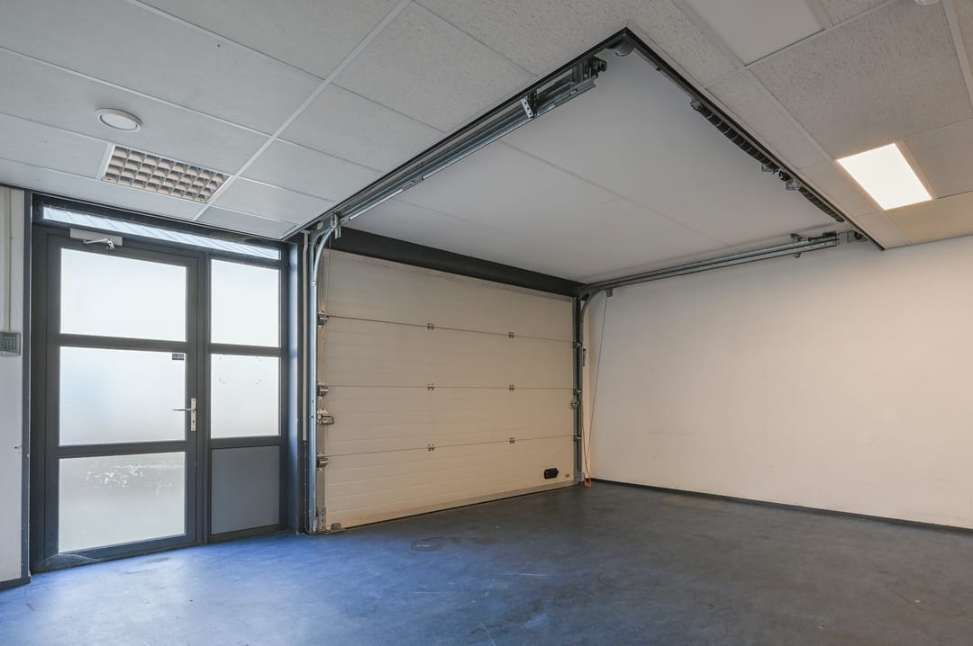 De bedrijfsruimte aan de achterzijde is voorzien van een overheaddeur met de afmetingen van hoog --> (inrijhoogte) 245 cm en breed --> 350 cm.